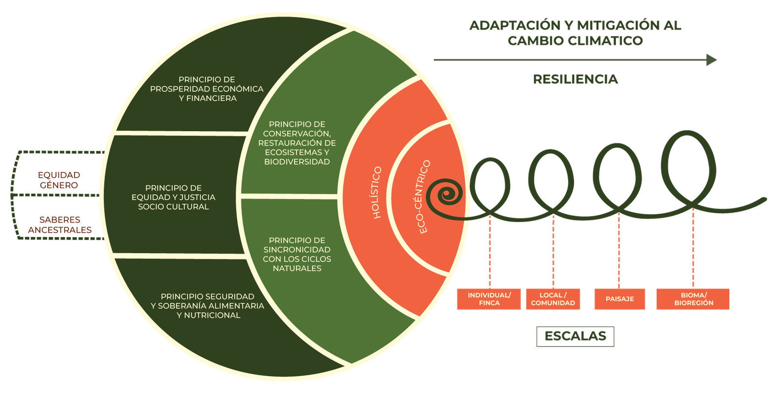 Sincronizar con los ciclos naturales significa mimetizar y aprovechar la energía que el sistema aporta para el desarrollo de acciones. La circularidad de los recursos es una forma de aprovechar al máximo esa energía que se transforma constantemente. Eso permite acelerar procesos naturales, bajar costos, evitar incoherencias productivas que llevan a pérdidas económicas relevantes, además de fortalecer la posibilidad de que ese sistema natural logre mayor resiliencia para enfrentar los impactos del cambio climático y otros eventos.
